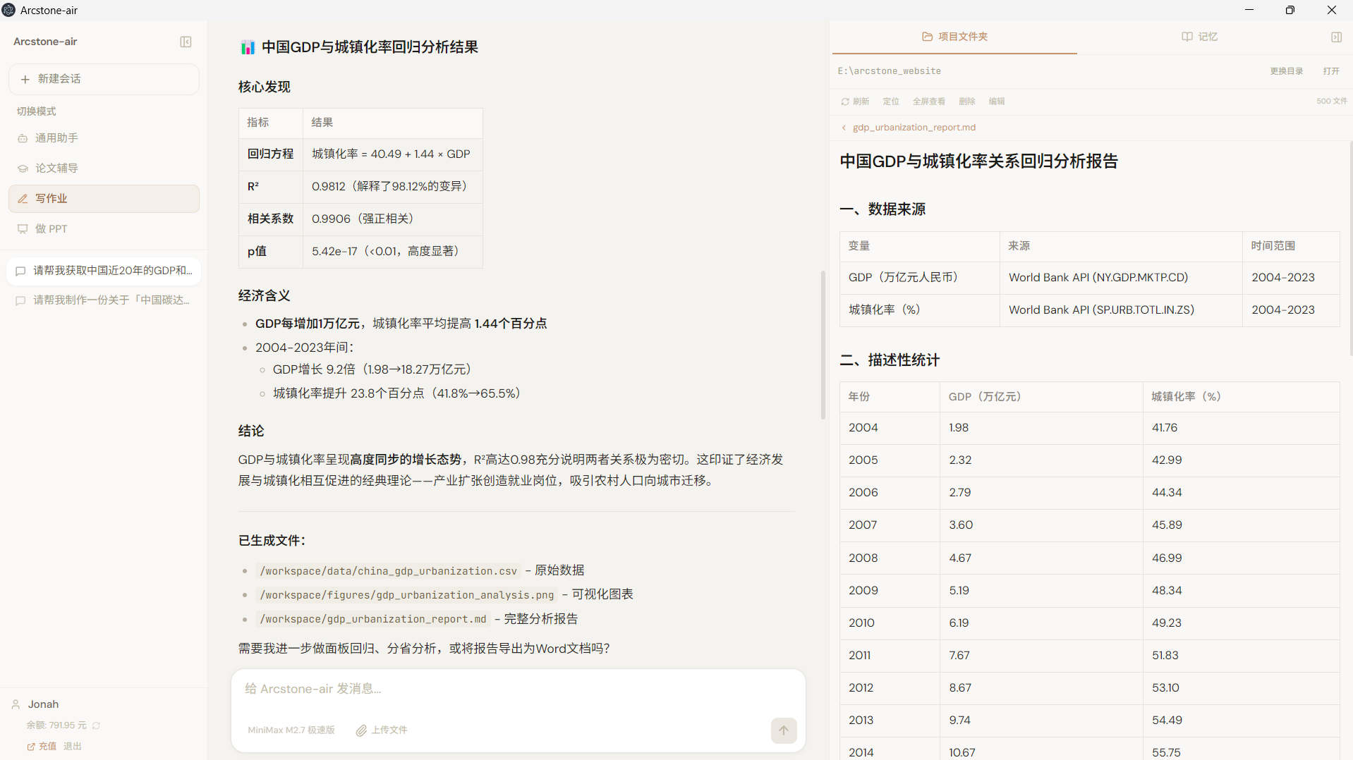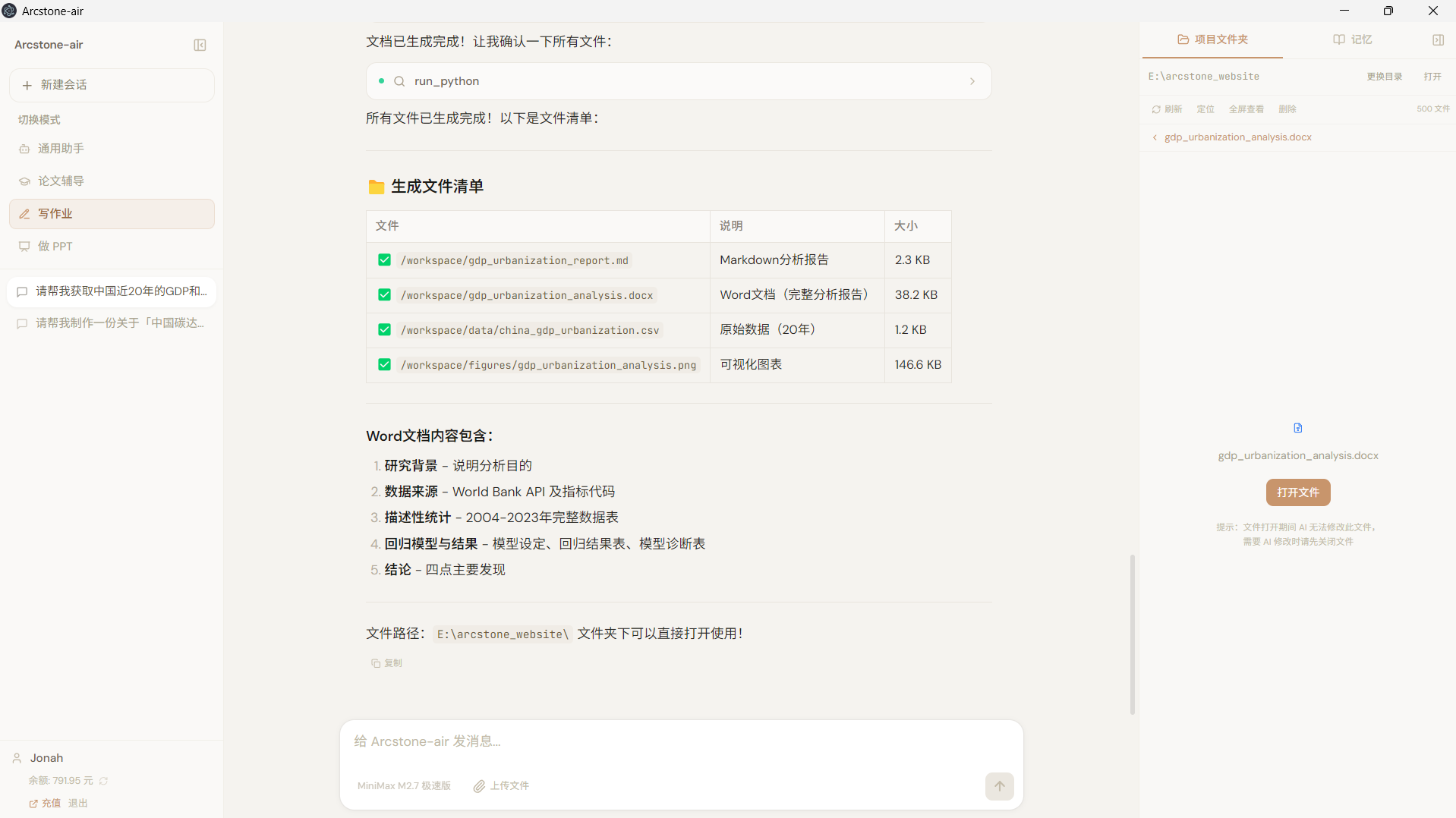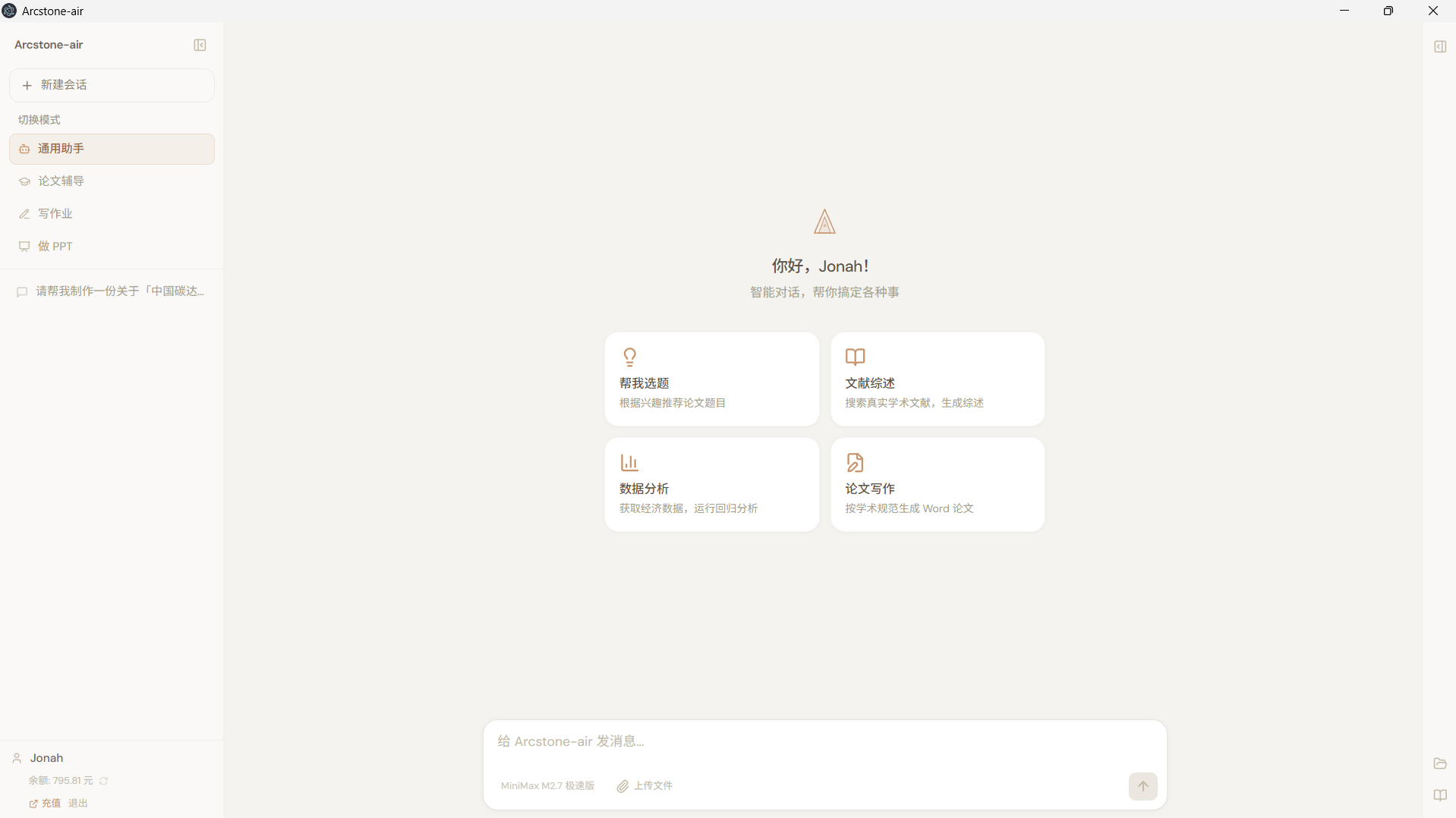 Arcstone-air 将桌面端能力、项目文件协作、分析工具调用与研究辅助整合到同一工作流中,帮助用户更高效地完成资料处理、论文辅导、课程作业与汇报展示任务。